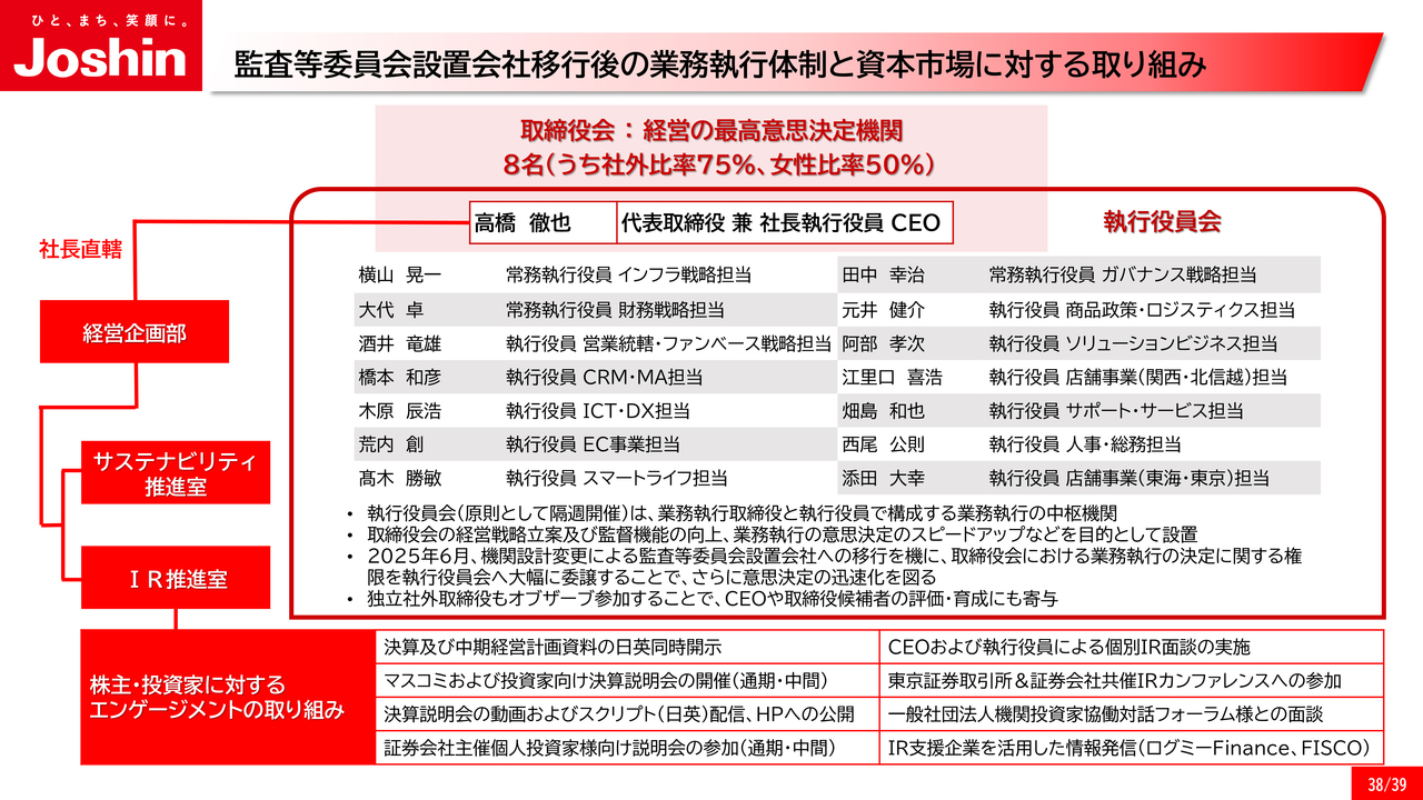 監査等委員会設置会社移行後の業務執行体制と資本市場に対する取り組み