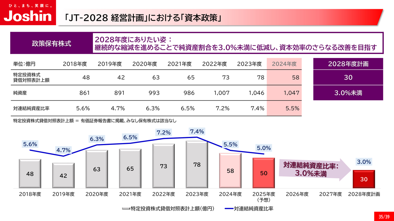 続いて35ページをご覧ください。「政策保有株式」の縮減方針です。