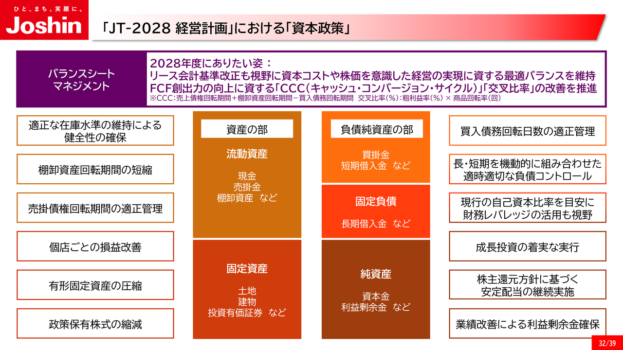 続いて32ページをご覧ください。ここからは、新中計における「資本政策」についてご説明します。