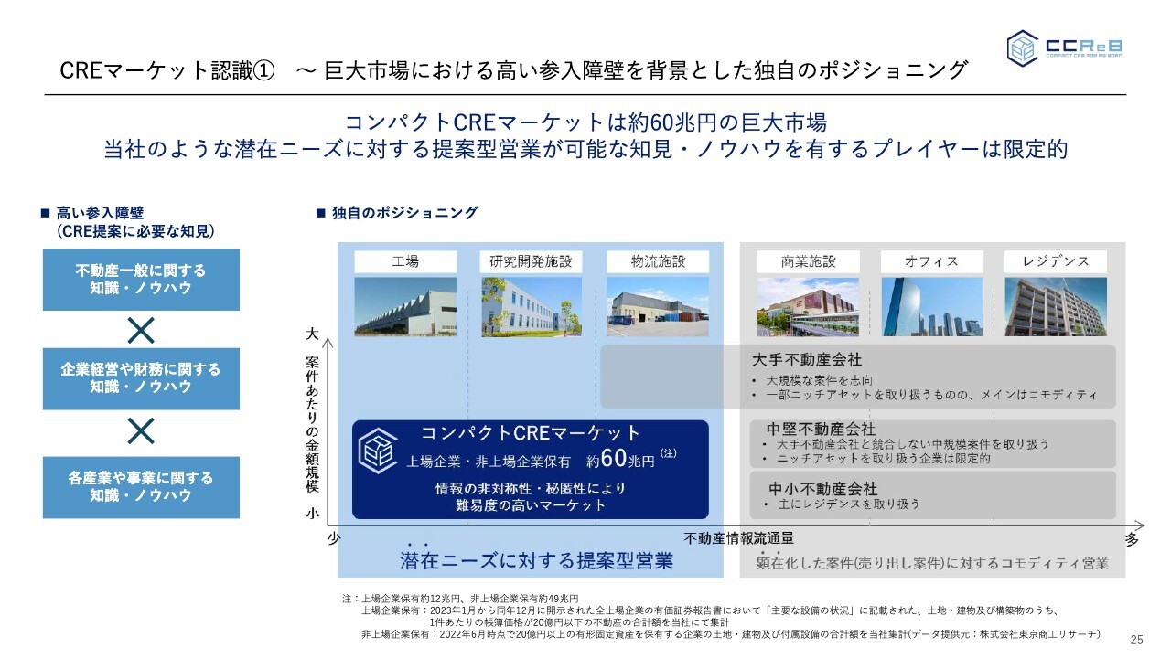 CREマーケット認識① ~ 巨大市場における高い参入障壁を背景とした独自のポジショニング