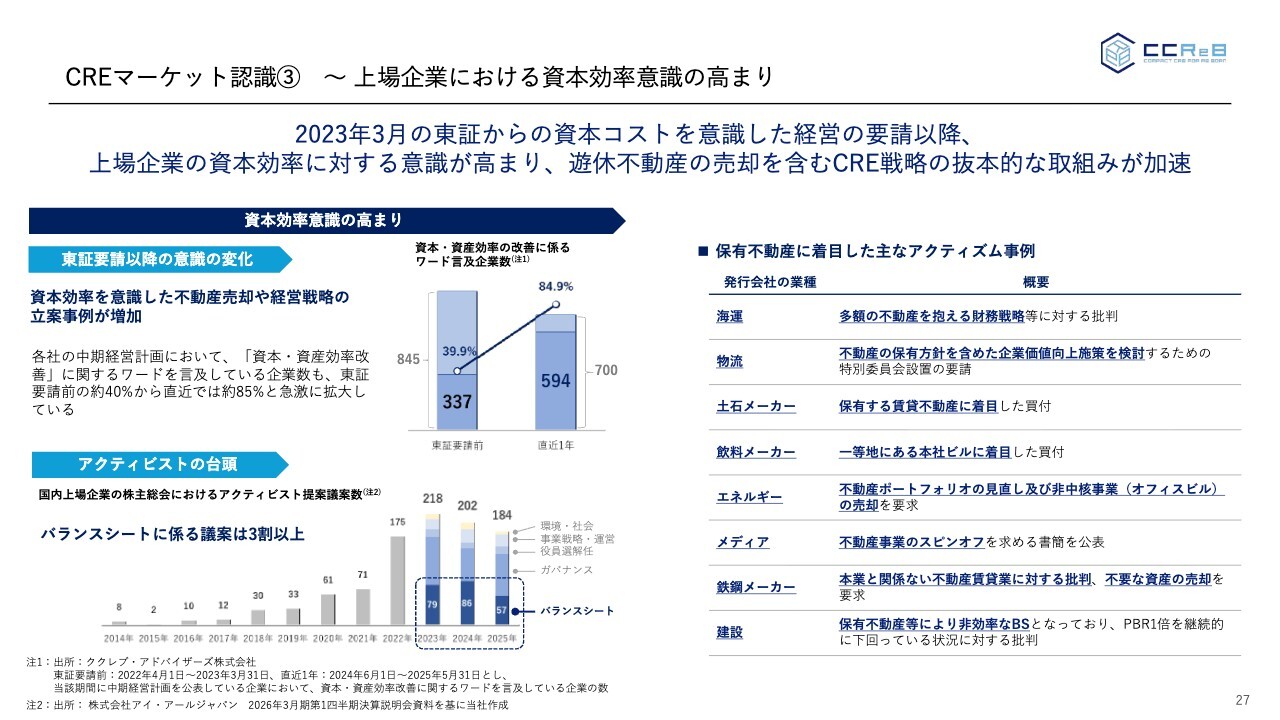 CREマーケット認識③ ~ 上場企業における資本効率意識の高まり