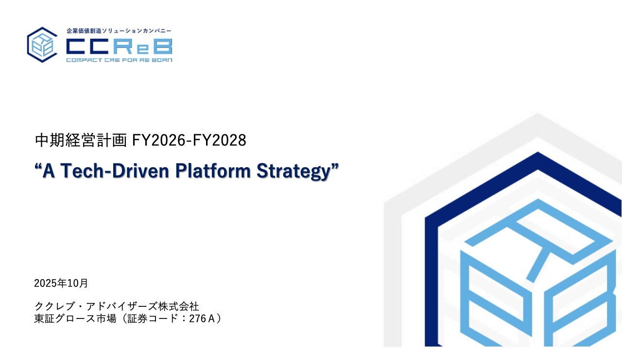 宮寺之裕氏(以下、宮寺):みなさまこんにちは。ククレブ・アドバイザーズ株式会社代表取締役の宮寺です。本日はお忙しい中、当社の決算と中期経営計画の説明会にお集まりいただき、ありがとうございます。