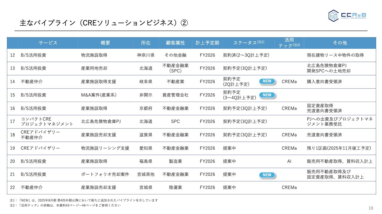 主なパイプライン(CREソリューションビジネス)②