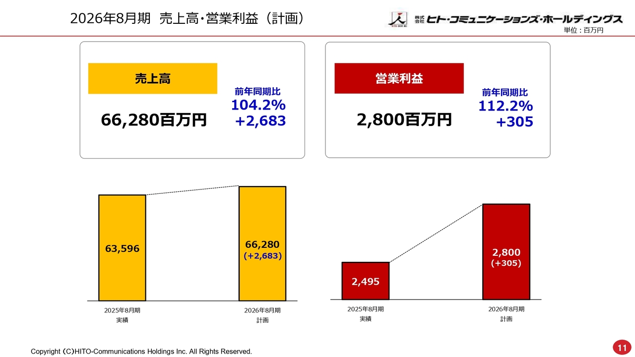 営業利益の計画は28億円で、前年同期比112.2パーセントとしています。経常利益も前年同期比112.1パーセントで、段階利益も2桁増で計画しています。最終的には償却などを予定していないことから、当期純利益は151.7パーセントの伸びとして計上しています。