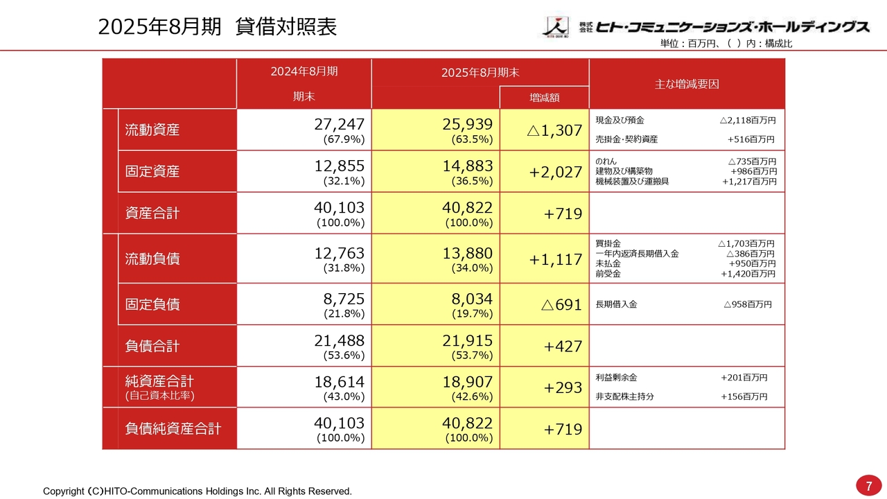 その結果、資産の合計は408億2,200万円となり、前年同期比で7億1,900万円増加しました。