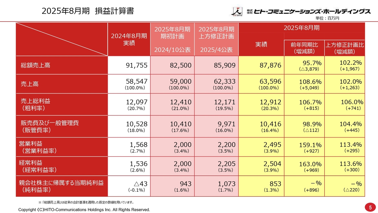 安井豊明氏(以下、安井):株式会社ヒト・コミュニケーションズ・ホールディングス代表取締役社長グループCEOの安井豊明です。スライドの決算説明資料に沿って2025年8月期の通期の決算説明を行います。