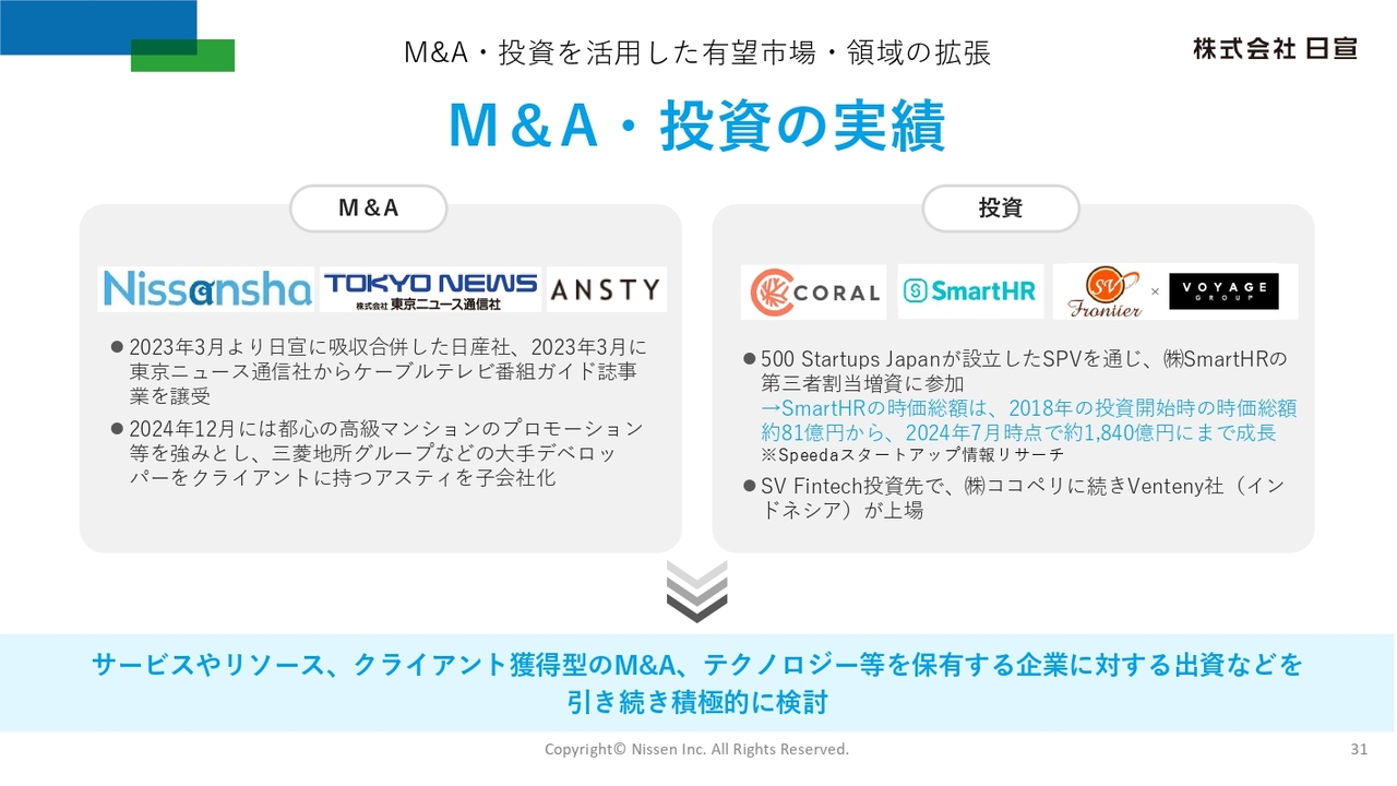 M&A・投資の実績