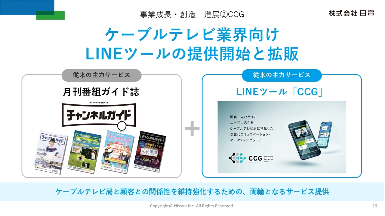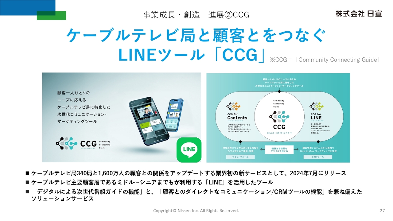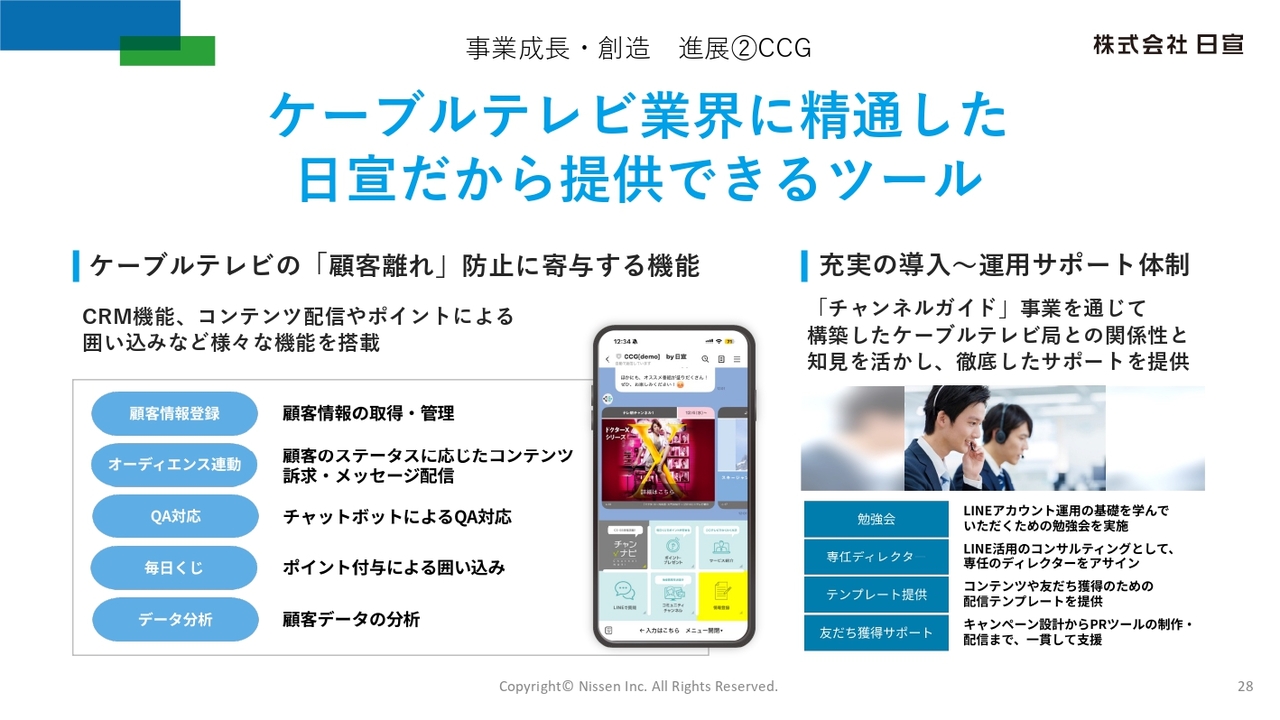 また、日宣最大のクライアント群であるケーブルテレビ業界に対し、業界初となるLINEを活用したケーブルテレビ局向け顧客コミュニケーションツール「CCG」の提供を開始し、受注局数が順調に増加しています。