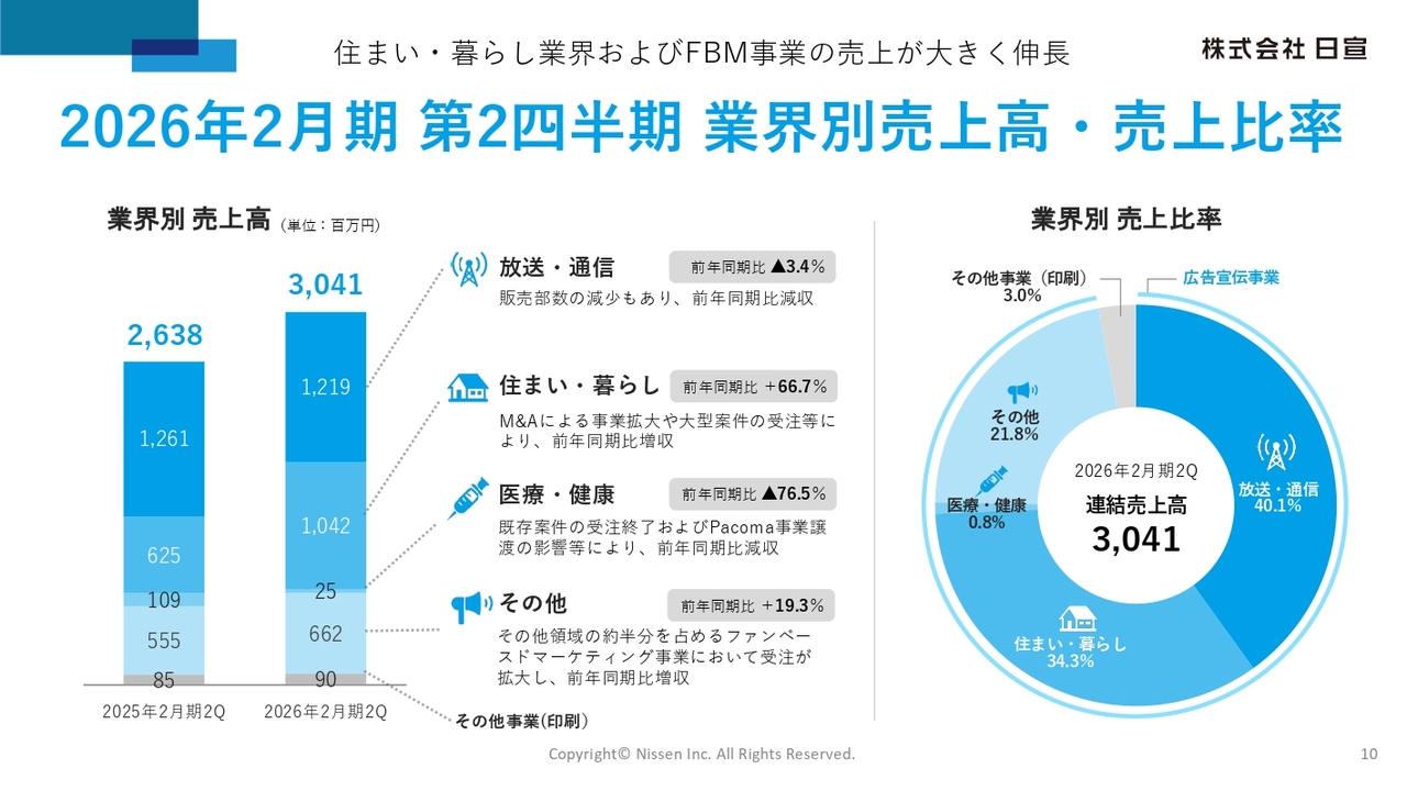 住まい・暮らし業界の売上高には、昨年12月にM&Aを実施したアスティ社の売上約3億円が含まれています。M&Aに加え、オーガニックの部分でも前年同期比で1億円強の増収となりました。