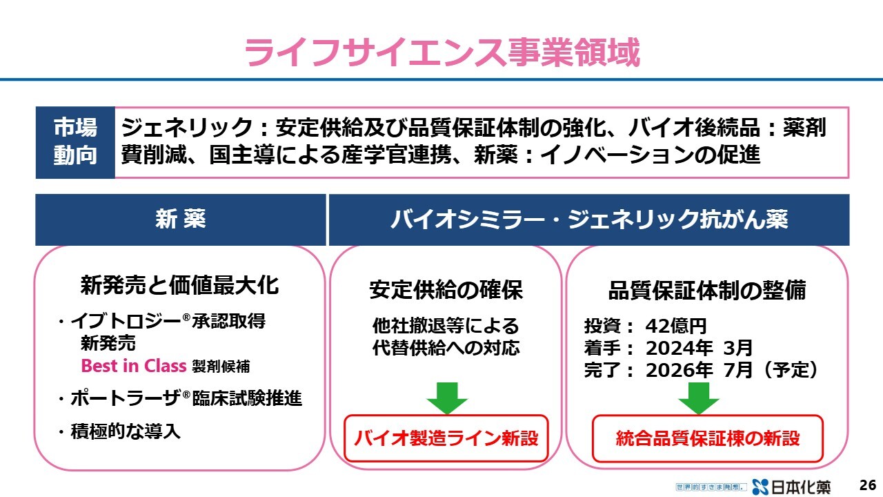 バイオシミラーに関しても同様に、協力会社と連携しながら他社の販売中止などに対応しています。それに伴い、できるだけ価格を維持できるようなポジションを確保したいと考えています。