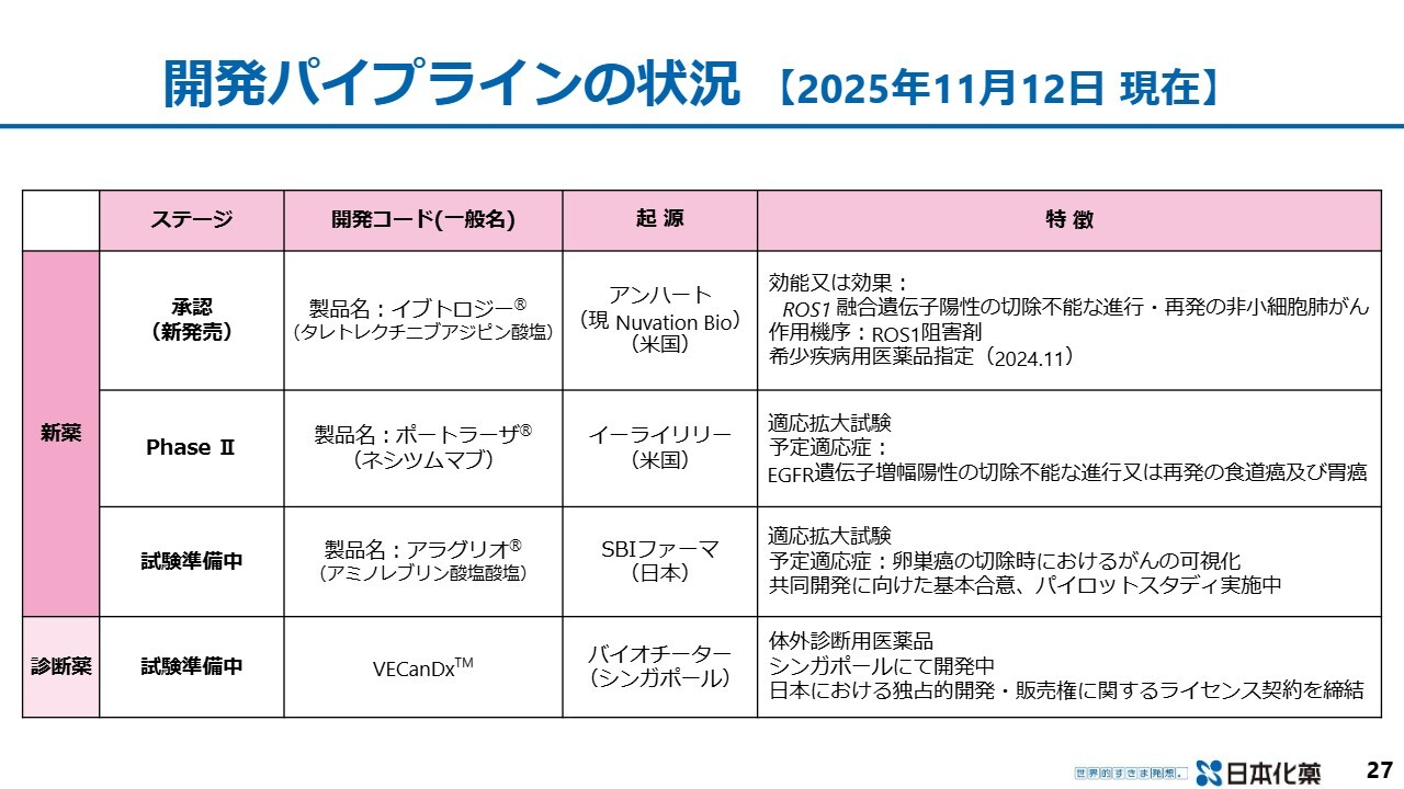 島田:導入契約の見直しにより、研究開発費用の負担が一部変更されたことが影響しています。さらに、ジェネリック医薬品やバイオシミラーが非常に好調で、新薬についても「ポートラーザ」「アラグリオ」も売上を伸ばしており、この3つすべてが好調を維持していることが要因です。