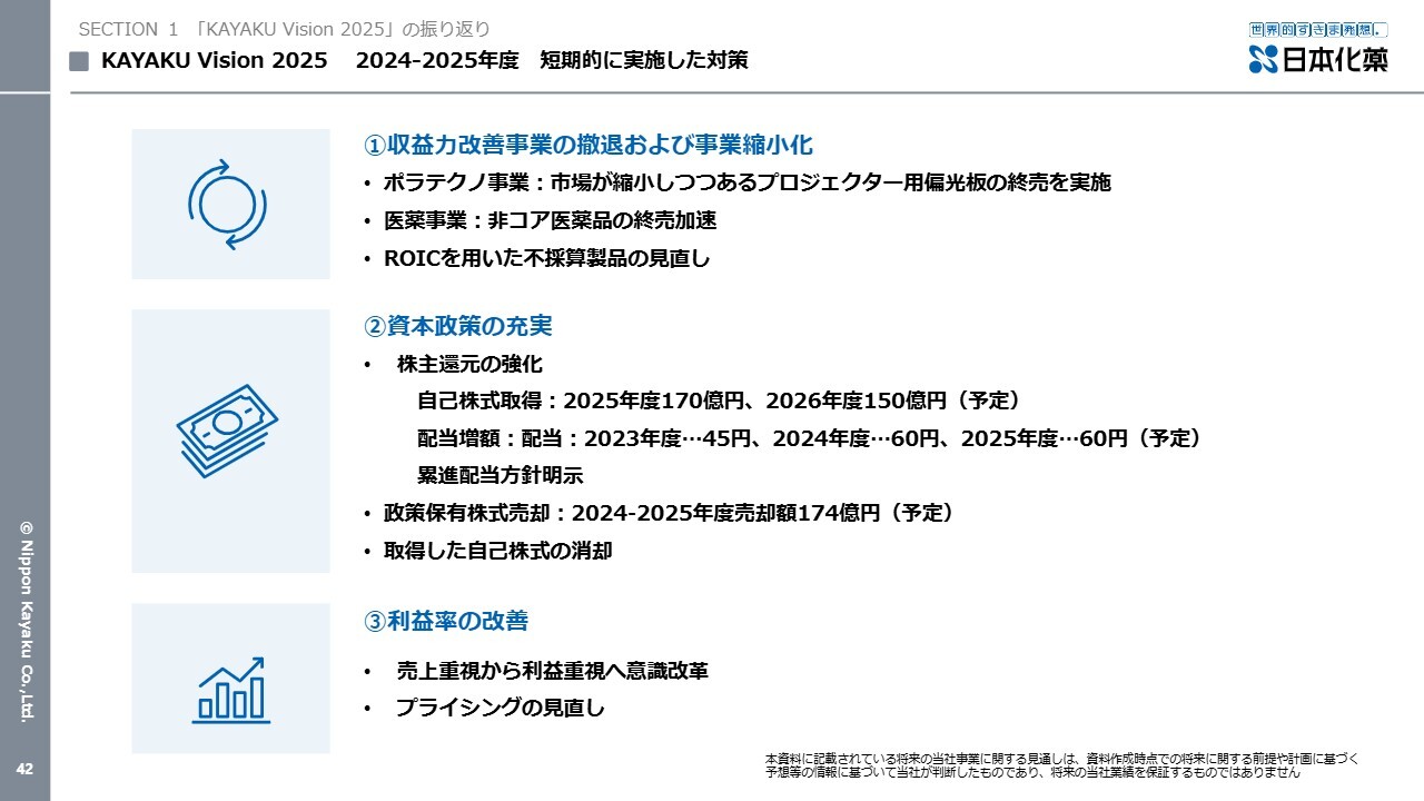 また、スライドには記載していませんが、来年2026年度には150億円、2年間で合計320億円の自社株買いを行うことを、すでに公表しています。こちらを着実に進めていきたいと考えています。