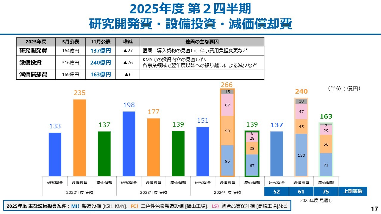 2025年度 第2四半期 研究開発費・設備投資・減価償却費