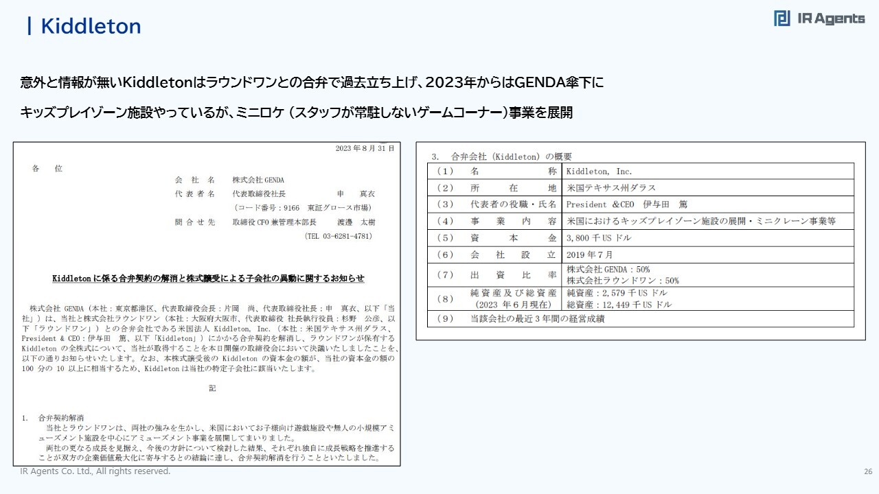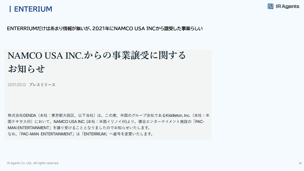 関本:ENTERIUMについてはあまり情報がありませんでしたが、2021年にNAMCO USA INC.から譲り受けた事業ということです。メインは今回トピックに挙げたようなミニロケ事業のため、これまでの4社についてご説明したいと思っています。