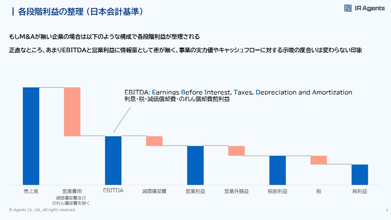 だからこそ、M&Aをしている企業の場合、EBITDAを指標として見せる企業が一定存在するという話はよくされています。
