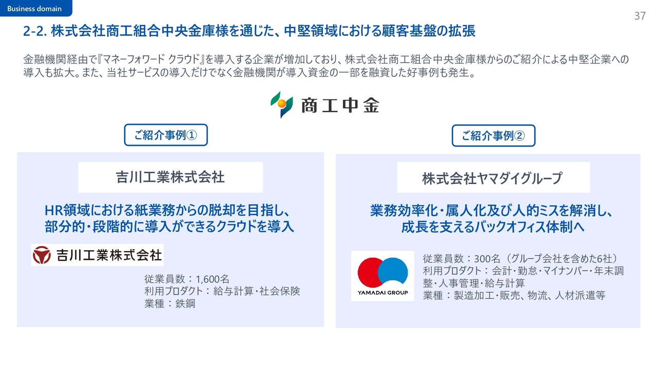 2-2. 株式会社商工組合中央金庫様を通じた、中堅領域における顧客基盤の拡張