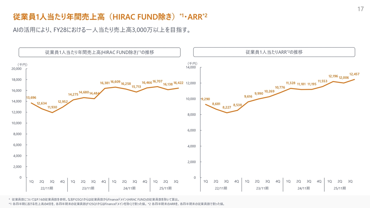 従業員1人当たり年間売上高(HIRAC FUND除き)・ARR