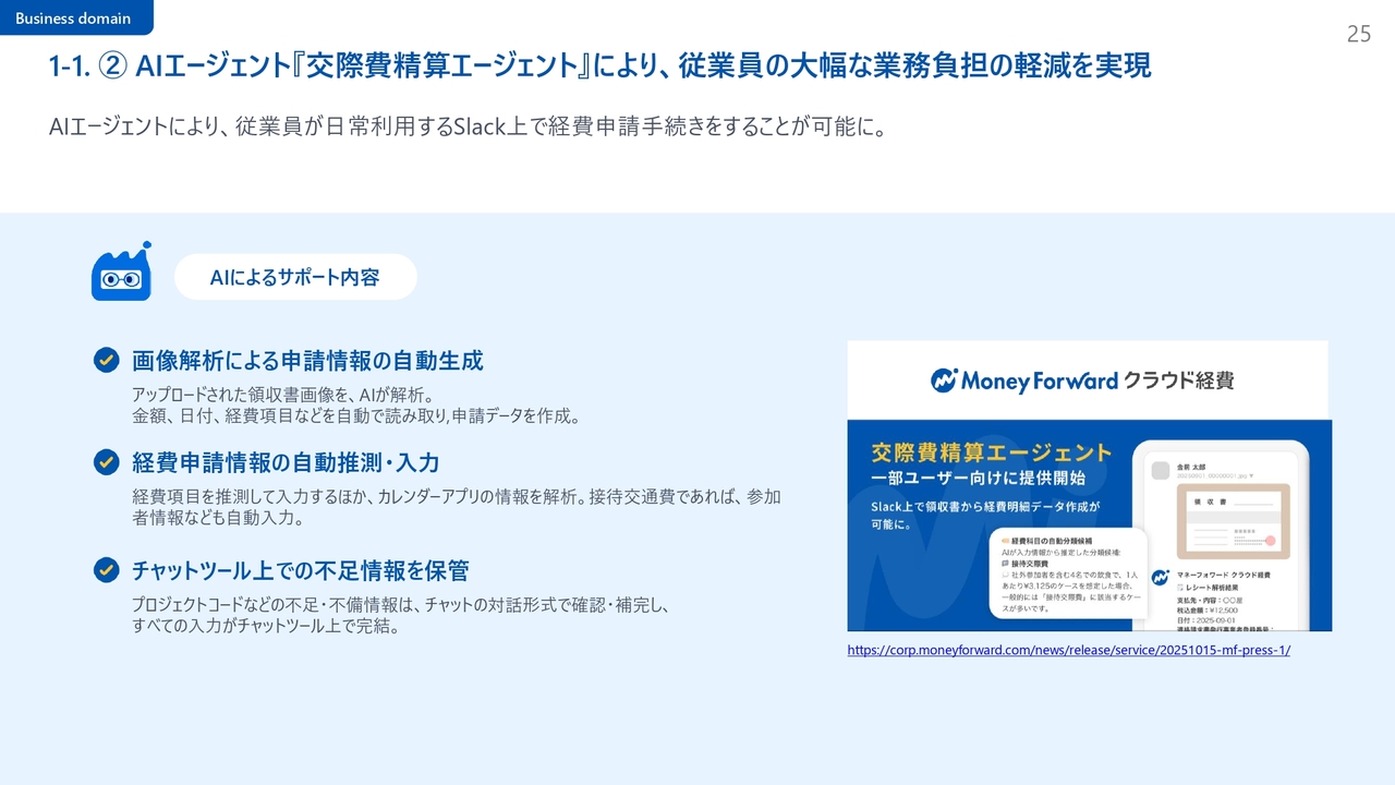 1-1. ② AIエージェント『交際費精算エージェント』により、従業員の大幅な業務負担の軽減を実現