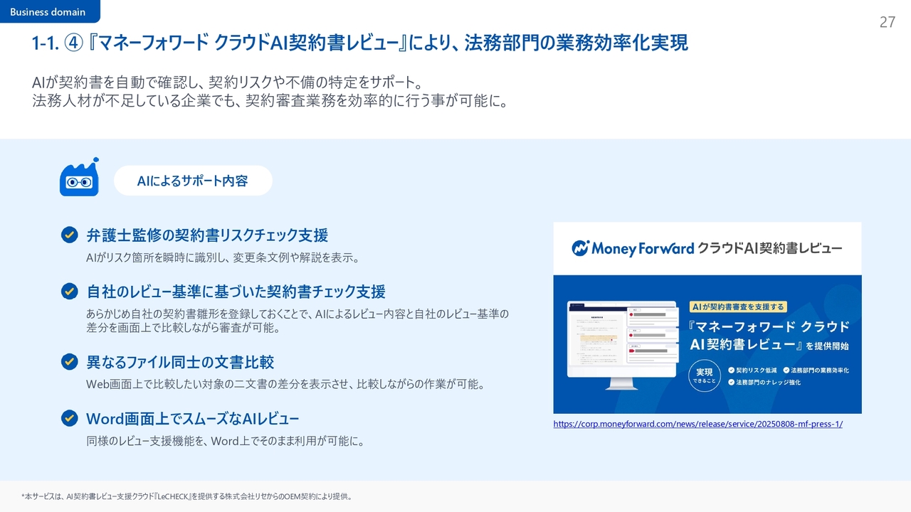 1-1. ④ 『マネーフォワード クラウドAI契約書レビュー』により、法務部門の業務効率化実現