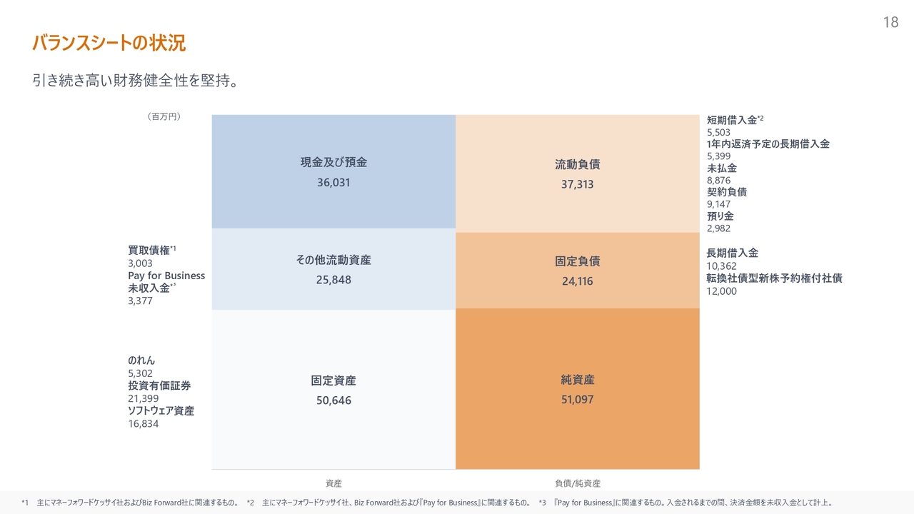 バランスシートの状況です。引き続き高い財務健全性を維持しており、現預金は高水準を保ち、十分な流動性を確保しています。