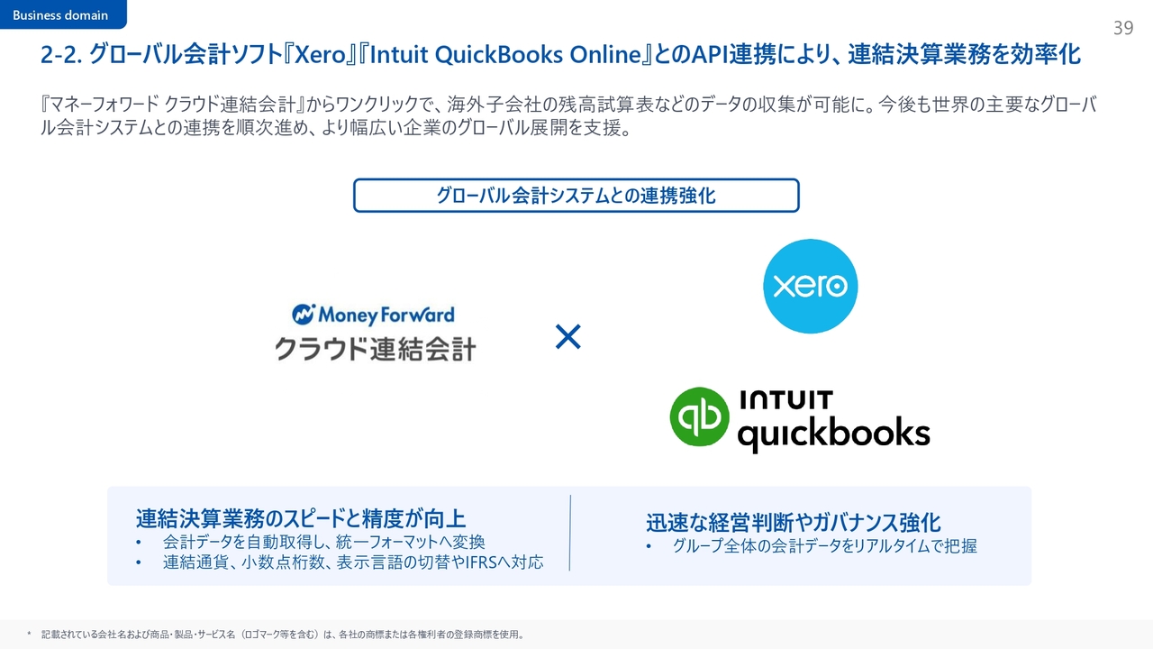 2-2. グローバル会計ソフト『Xero』『Intuit QuickBooks Online』とのAPI連携により、連結決算業務を効率化