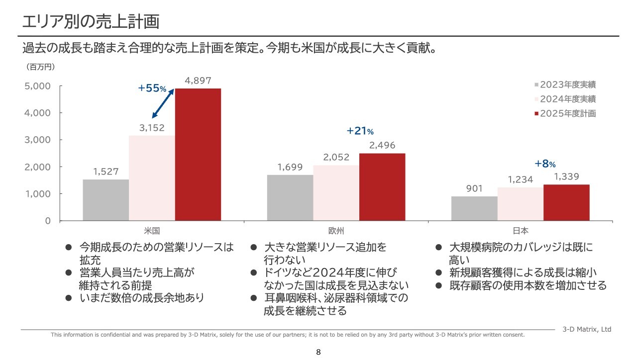 また、ドイツなど2024年度に成長を伸ばせなかった地域については、成長を見込まず保守的な計画としています。ただし、耳鼻咽喉科や泌尿器科の領域では引き続き高い成長を遂げており、この領域においては成長を継続させる計画です。