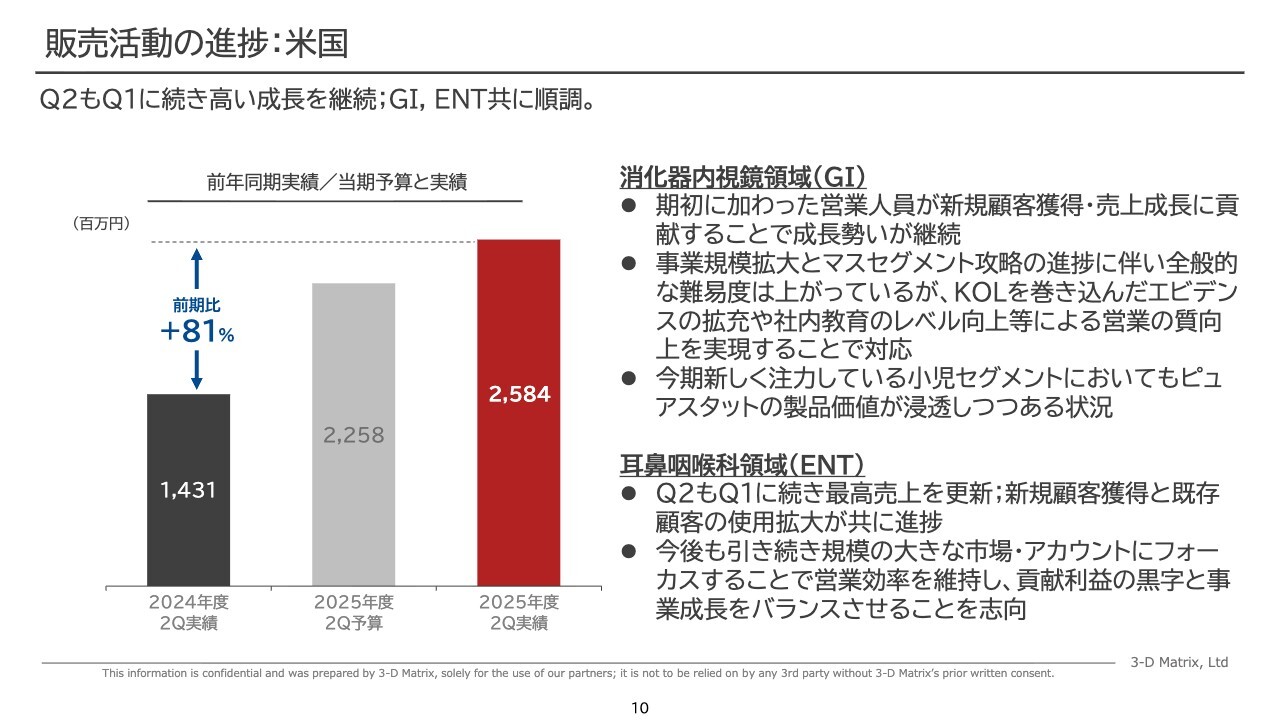 また、耳鼻咽喉科領域(ENT)においても、第2四半期は第1四半期に続き、最高売上高を更新しました。新規顧客の獲得と既存顧客の使用量拡大の両方が進展しています。