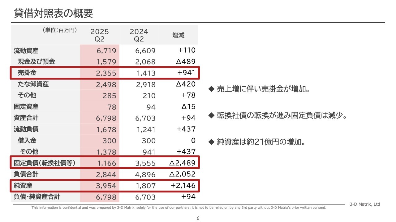 また、転換社債の転換が進み、固定負債は前年同期比で24億8,900万円減少し、残り11億6,600万円となっています。