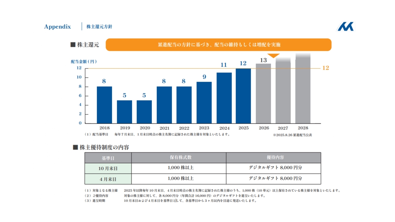 井上:累進配当の方針を今年8月26日に明確にされたということですが、御社の累進配当とはどのようなことでしょうか?