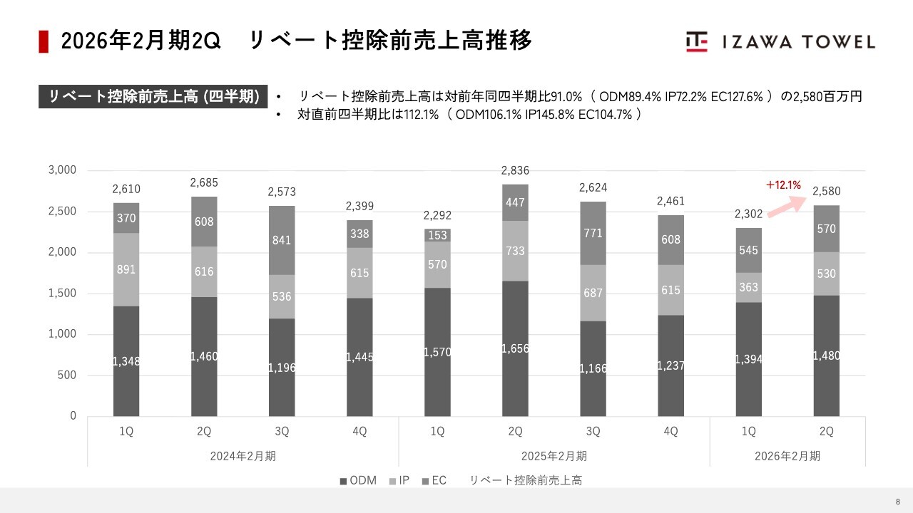 2026年2月期2Q リベート控除前売上高推移