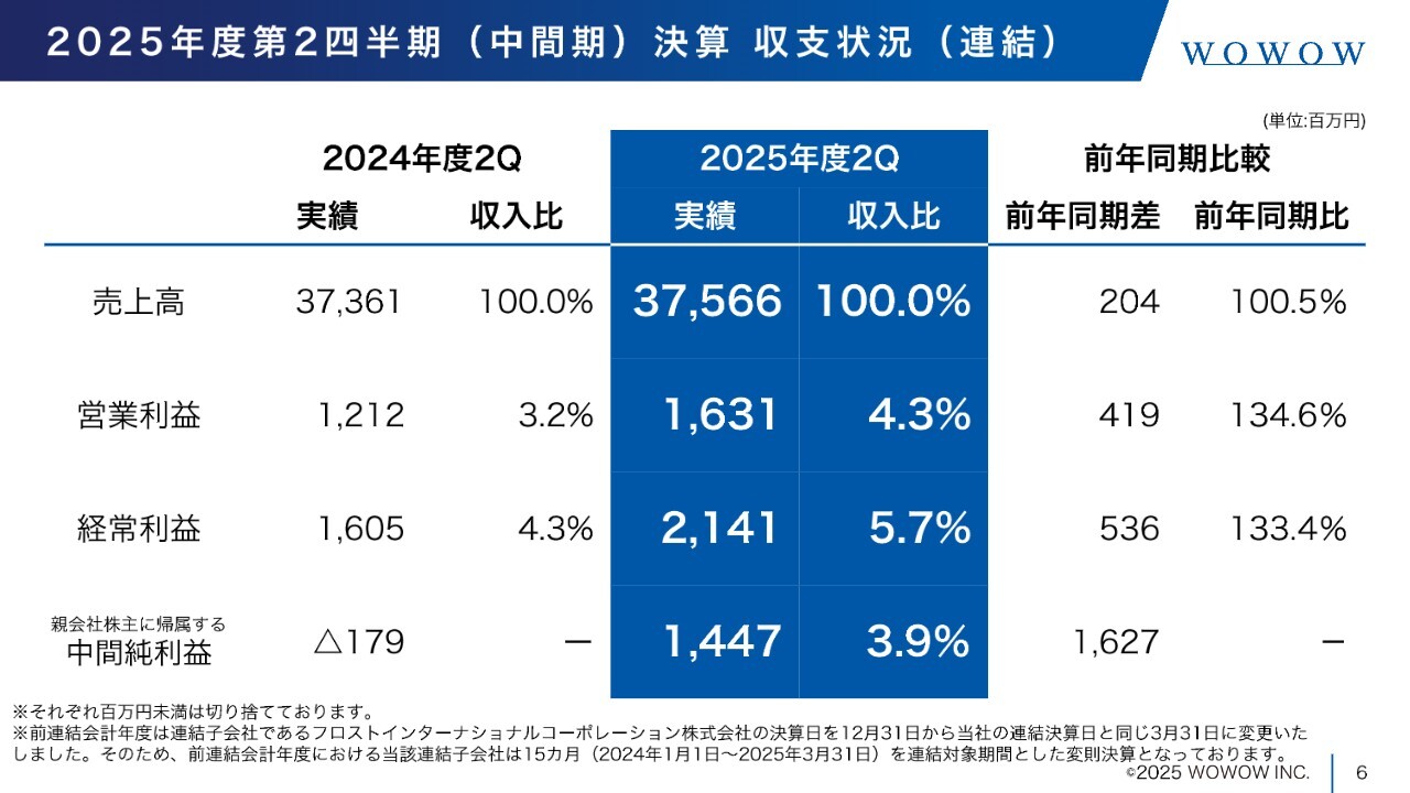 【QAあり】WOWOW、2Qは会員収入減もグループ会社の売上増等により増収増益 10月よりWOWOW百貨店がグランドオープン