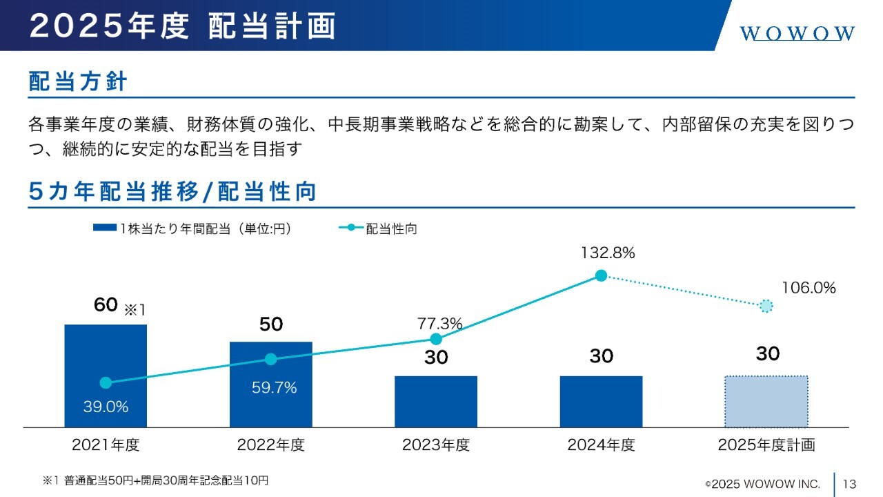 スライド13ページ、2025年度配当計画です。1株当たりの配当30円を計画しています。こちらも、当初の公表値から変更はありません。私からの説明は、以上となります。