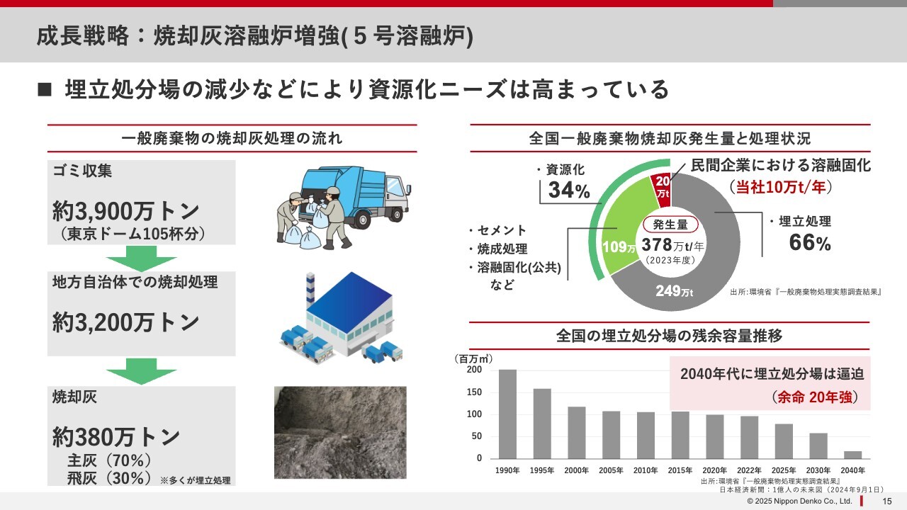 また、公共団体が所有している溶融固化を行う設備の老朽化に直面しており、新しく投資するためには非常に大きな財政負担が伴うため、私どもを含めた民間企業に対する期待が非常に高まってきています。