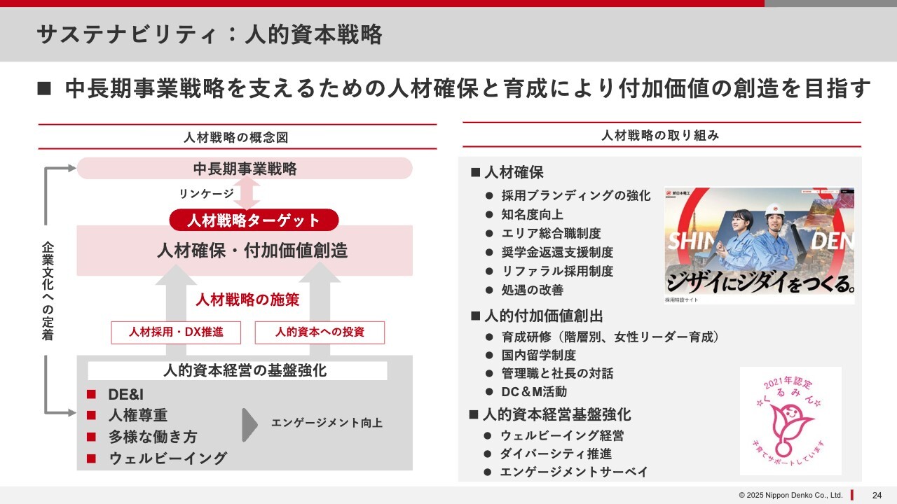 また、「企業は人なり」は当たり前のことですが、人的資本という意味でも、人材の確保から人的な付加価値の創出、人的資本経営の基盤強化を着実に進めることによって、中期経営計画全体がよく回るよう取り組んでいます。