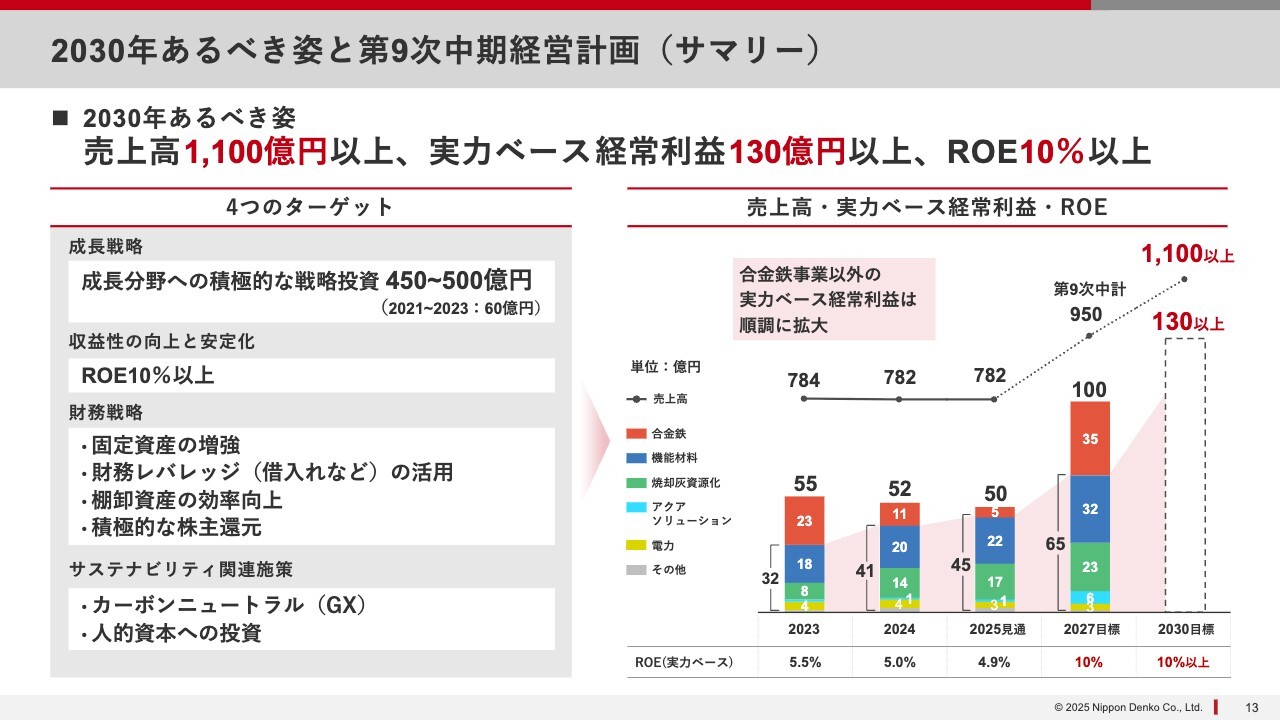 【QAあり】新日本電工、成長分野への積極的な戦略投資を実行し、2030年には売上高1,100億円・ROE10%以上の達成を目指す