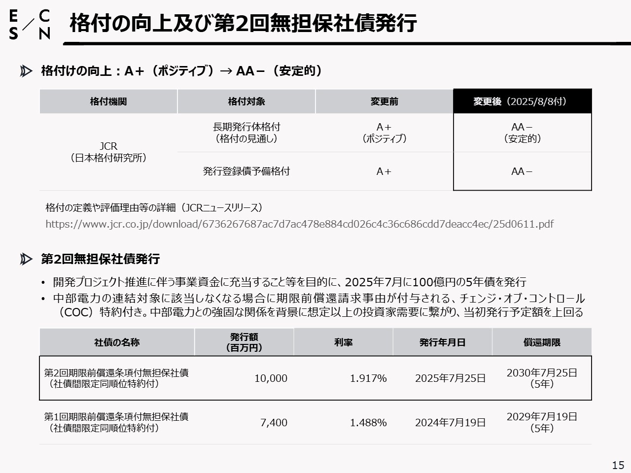 日本格付研究所(JCR)による格付けについては、「A+(エープラス)ポジティブ」から「AA-(ダブルエーマイナス)安定的」へとワンノッチ上昇しています。不動産の堅調な仕入れと将来収益を確保することで、当社の持続的な成長基盤をさらに高めていきたいと考えています。