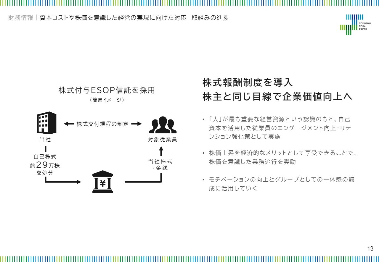 また、投資家のみなさまとの対話の中で、当社の株式1単元を購入するのに40万円から45万円程度かかるという点から、「購入代金が高い」「流動性が低いので、投資対象として検討しにくい」といったご意見を複数いただいていました。