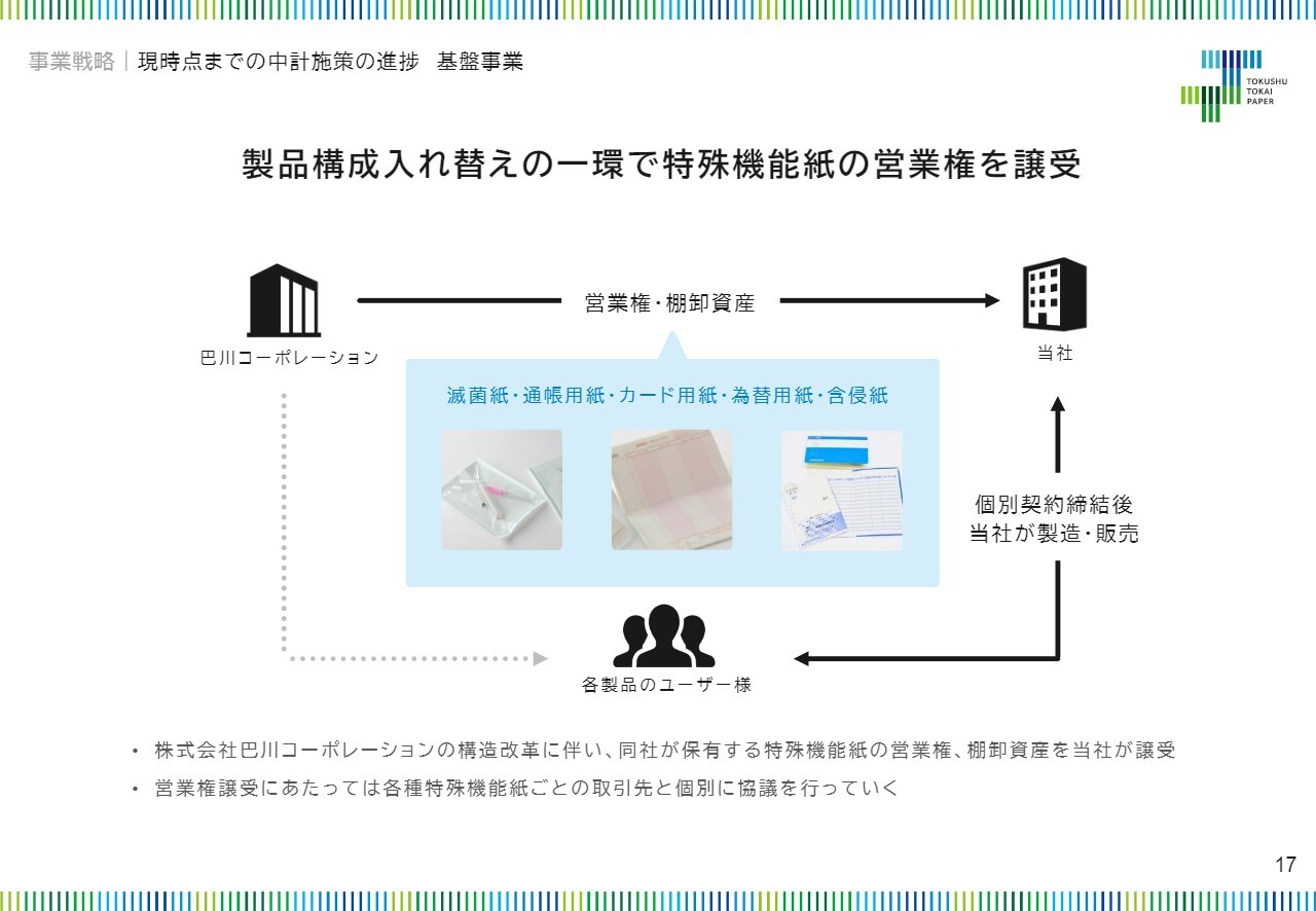 対象となるのは滅菌紙、通帳用紙、カード用紙、為替用紙、含浸紙です。これらの製品については、製品ごとに異なるお客さまがいるため、現在、お客さまごとに個別に協議を進めている段階です。