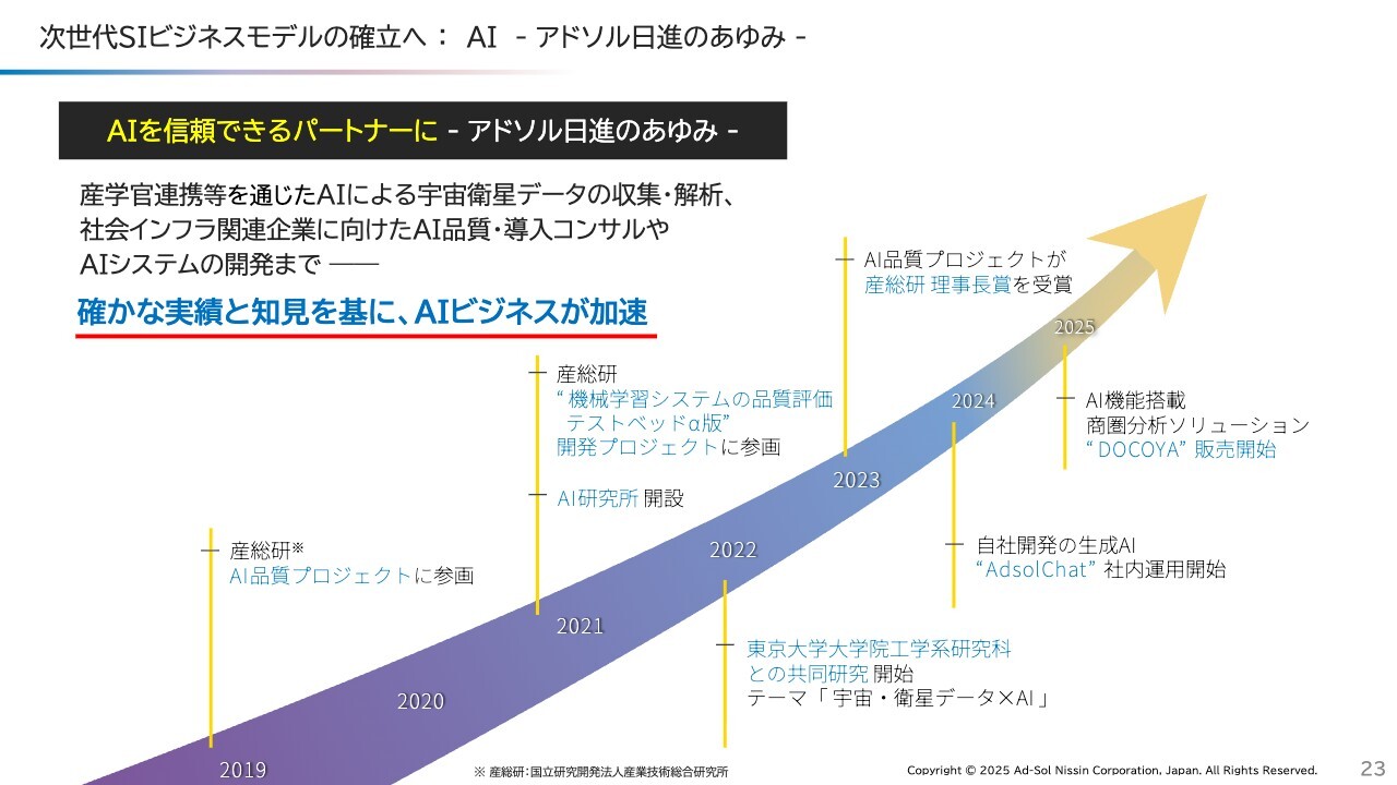 次世代SIビジネスモデルの確立へ : AI - アドソル日進のあゆみ -
