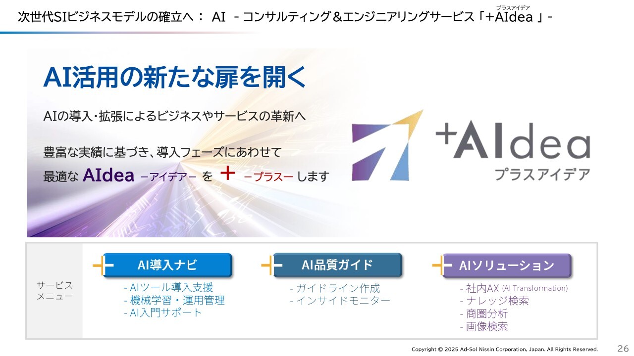 次世代SIビジネスモデルの確立へ : AI - コンサルティング&エンジニアリングサービス 「+AIdea」 -