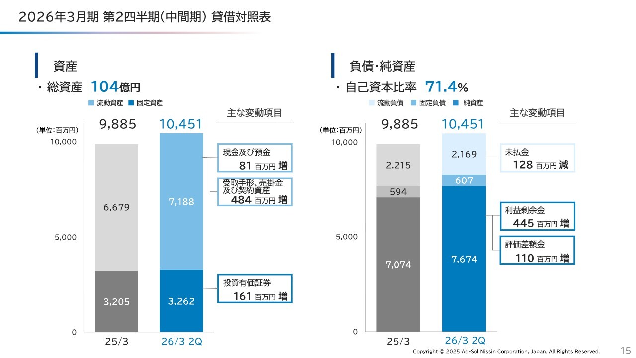 2026年3月期 第2四半期(中間期) 貸借対照表