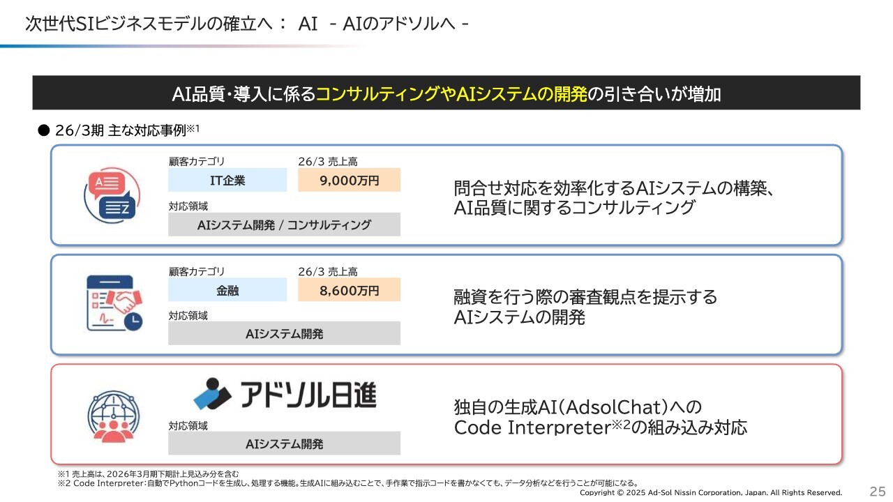 もちろん、AIを活用したシステム開発をはじめ、業務効率化も並行して進めていますが、一方でAIを使いこなせる高度IT人材の集団になることが、成長戦略の実行には必須だと考えています。したがって、来期以降も人材採用を強化していく方針です。
