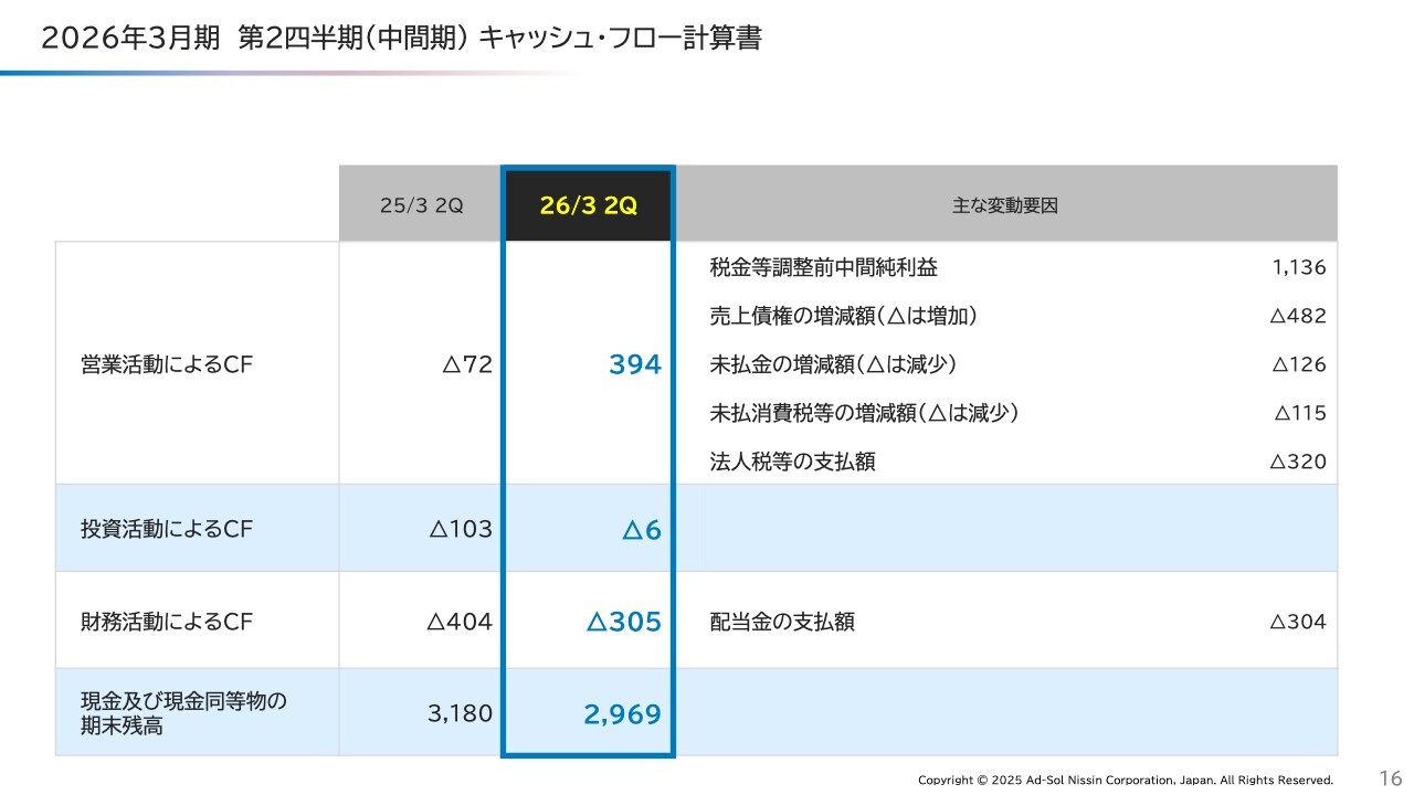 以上で、2026年3月期第2四半期の説明を終了します。ご清聴ありがとうございました。
