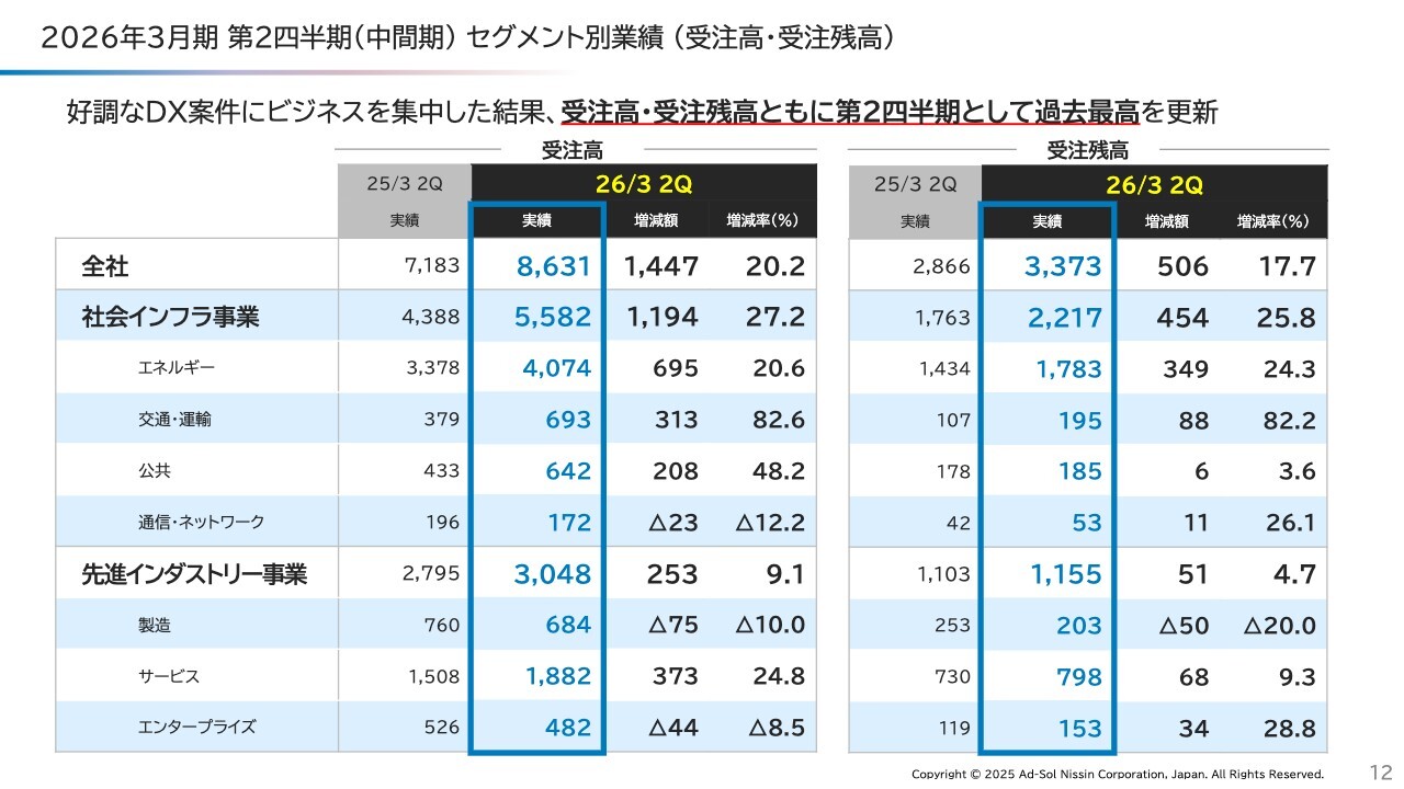 2026年3月期 第2四半期(中間期) セグメント別業績 (受注高・受注残高)