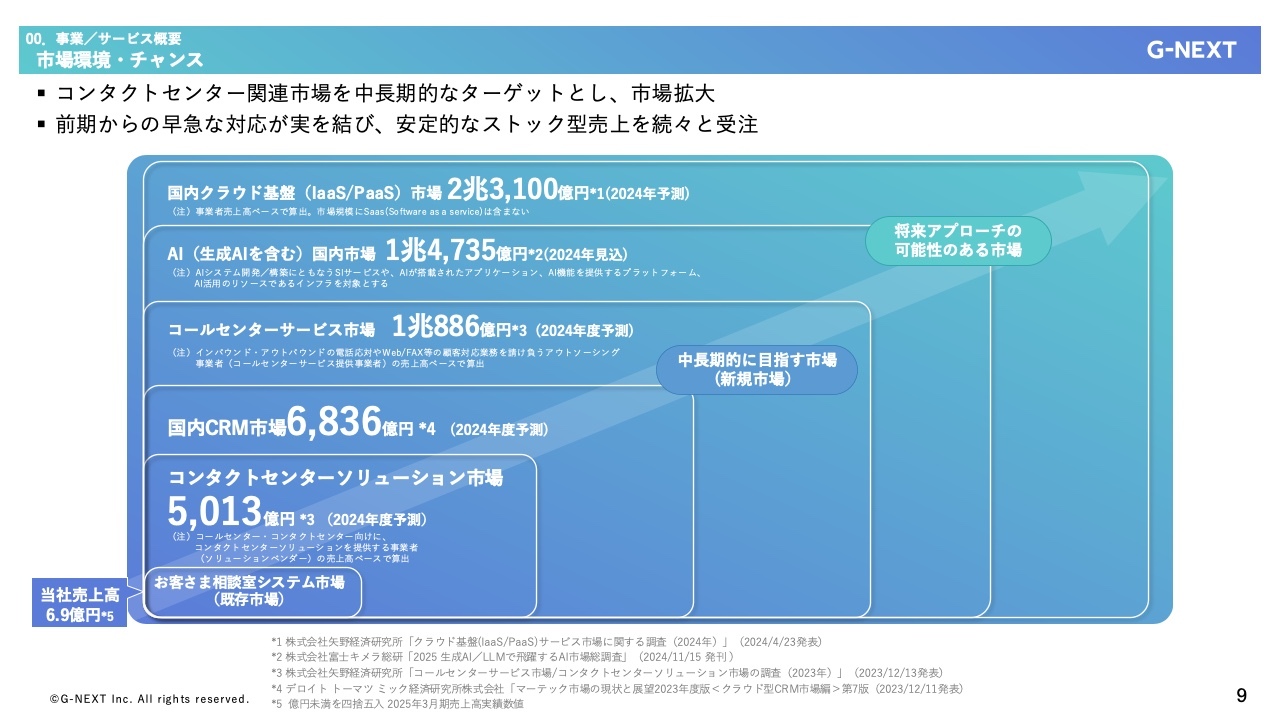 市場としては、コンタクトセンター関連市場を中長期的なターゲットとし、市場拡大を目指しています。現在、安定的なストック型売上を続々と受注中です。