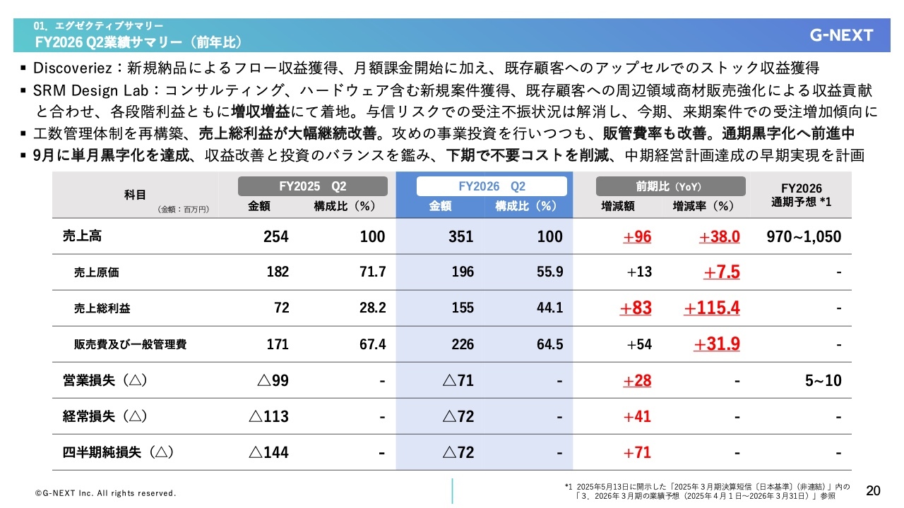 【QAあり】ジーネクスト、1Qに続き増収増益で着地、9月単月黒字達成 売上総利益は前年比+115.4%と急改善