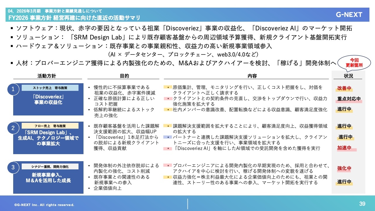 FY2026 事業方針 経営再建に向けた直近の活動サマリ