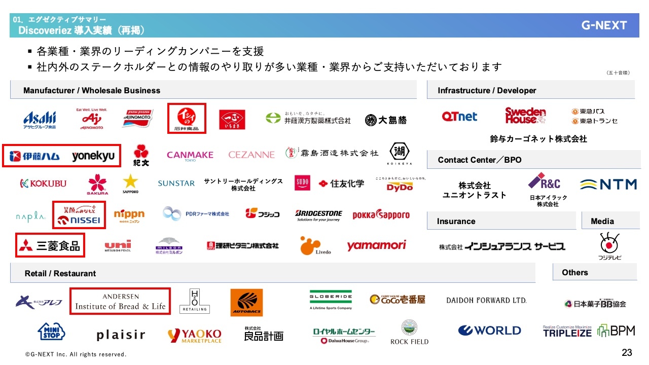 マーケット開拓においては、「Discoveriez」で受注が回復傾向にあり、生成AI関連が好調です。当社はもともとCTIと呼ばれる電話交換機や音声認識との親和性が高いCRMを提供しており、電話音声を活用した生成AIによる通話内容の要約や問い合わせ内容の自動分類化への需要が非常に増えています。