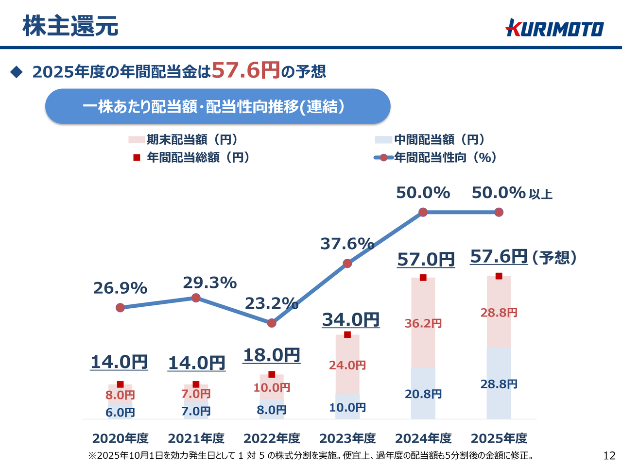 なお、10月1日に1対5の株式分割を実施しており、過年度の配当額は便宜上、修正して記載しています。