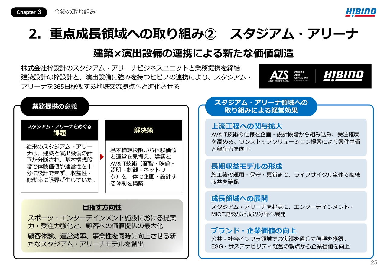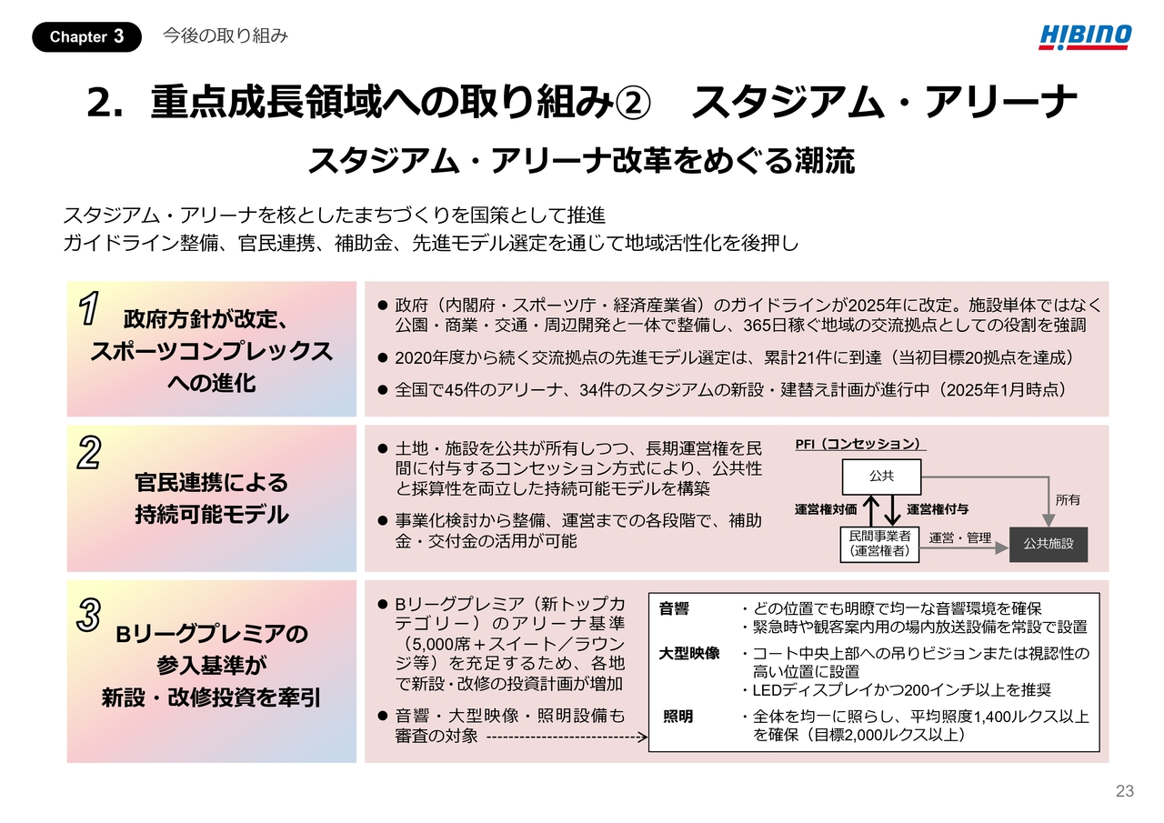 それでは、本日のテーマの3つ目、重点成長領域のもう1つであるスタジアム・アリーナ領域についてご説明します。